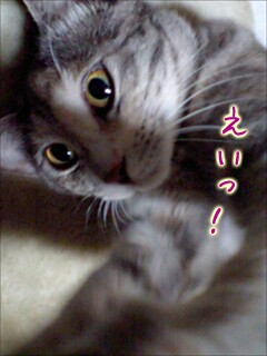 パソに向かっていると、ゼットはよくチョッカイを出しにきます。ネズミオモチャを持ってきたり…その度に遊んであげます。苦笑。