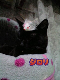 クロのネズミオモチャ乗せ。