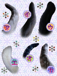 尾パーツの中で、カギ尻尾は「ウ」と「カ」です。あとはみんな長尻尾です♪