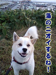 あまり来ないコースなのでレオも新鮮な気持ち。港、船着場が見えます。