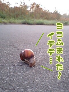 横断中のカタツムリのニオイを嗅がせようとしたら…レオ、カタツムリの横腹少し踏んでしまいました。何とか無事。
