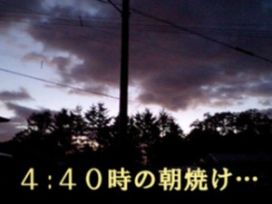 8日夜11時に仮眠、深夜2時過ぎに起きてイラスト最中…早朝4:40の朝焼けを撮る。