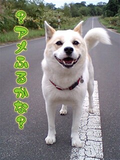おはようございます。今日は雨予報なんですが~夜中か早朝かに降ったらしく、道路は生渇き状態でした。また雨が降りそう…その前にいつもの散歩出発!