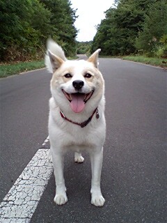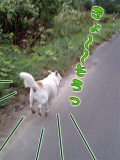 今朝は湿気があるどんより天気。レオは早く爆走したいけど、お利口?に待っています。「ヨシッ」というと、ブッ飛んで行きやがった…