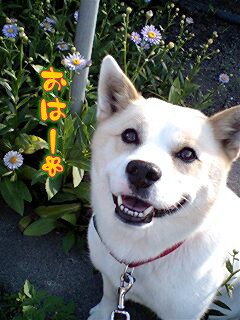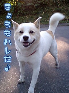 気持ちの良い朝です♪夏の暑い日は外小屋で過ごすレオ、昨夜は少々冷え込んでいたので、自分で小屋から毛布を引っ張り出して、寝床を作って寝てました