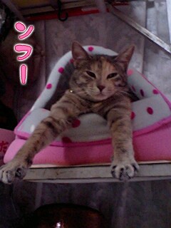 昨夜のおかしなゼット。夜も冷えてきてドームに入り始めた猫達、ゼットは両腕を伸ばして何をやっているのかな?