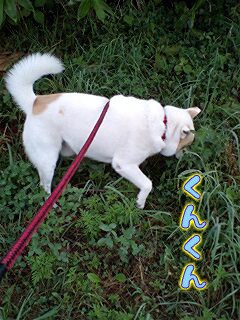 草むら散策に忙しいレオ、蒸し暑くてもニオイ嗅ぎ!