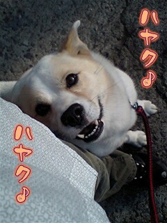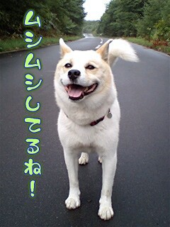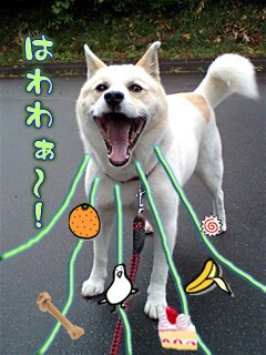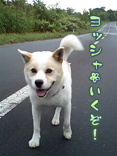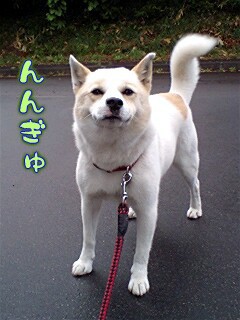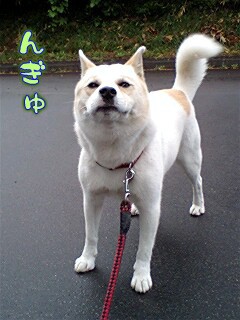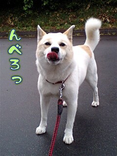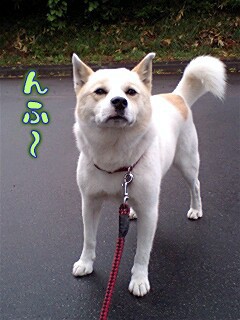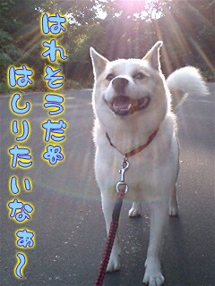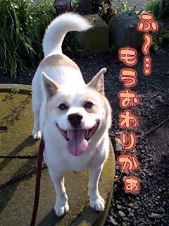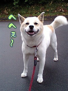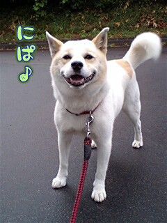 やはり…ヒモ散歩だと思いっきり笑顔とはいかないね。苦笑。