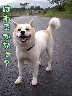 雨予報なのに…晴れてきたかな?(7:30)さすが晴れ男レオだね。