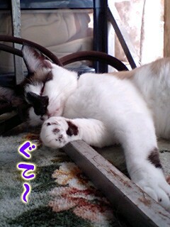 若干1ニャンコ、タオルドライ中にオシッコちびってしまいましたが~何とか終えました。さて次はレオだな!と、その前に昼前に腹ごしらえ。