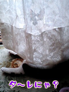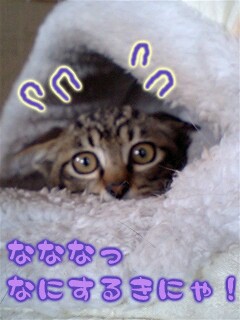 ご飯で誘い、そろりと戸を閉め捕獲~♪ニャンタハウスに入れてみました。ふふふ。