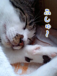 ニャンタはゴロゴロ。心地よい気温なのか、ずっと寝ています。