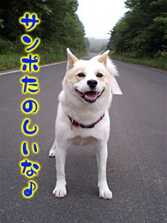 どんより空ですが、レオは「サンポサンポ♪」でノリノリです。