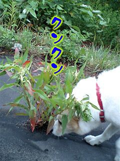 草むら散策でニオイ嗅ぎに夢中になっていると、後からの私に追い越されてしまいます。その度に走って私を追い抜き、先へ先へ行こうとするレオ。