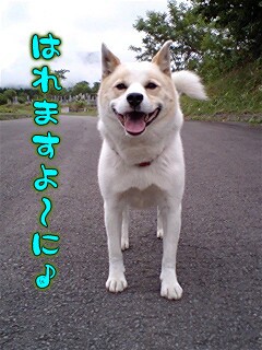 昨夜、友達から暑中見舞いのイラストと雑貨、レオにはオヤツが届きました♪ありがとう!レオは夢中☆
