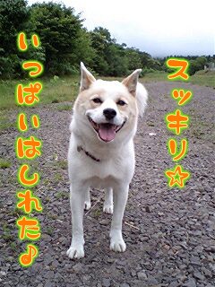 どんより雲で、ぺぺぺっと小さい雨粒が当たります。半袖じゃちょっと寒かったかな。レオは気持ち良さそうにしてた。