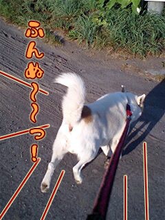 今朝は湿気があるどんより天気。レオは早く爆走したいけど、お利口?に待っています。「ヨシッ」というと、ブッ飛んで行きやがった…
