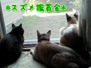 家の中に入ると、猫達はスズメ鑑賞会をしていた。笑。